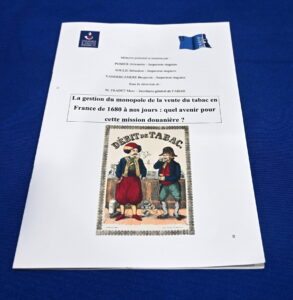 La troisième catégorie est celle des « mémoires de scolarité de l’Ecole Nationale des Douanes de Tourcoing ». Celle-ci tient particulièrement à cœur à l’AHAD car le travail fourni par les inspecteurs-élèves est d’autant plus méritant qu’il est réalisé durant l’année de formation à l’Ecole Nationale des Douanes de Tourcoing, tout d’abord, sur la base du volontariat et, d’autre part, en sus de l’ensemble de la formation. Il est donc réalisé sur du temps personnel et dans des délais très courts qui ne leur permettent pas, par exemple, de se déplacer pour consulter des archives ou se rendre dans des bibliothèques, ce qu’ils pourraient faire s’il s’agissait d’un travail réalisé dans un cadre universitaire classique. L’AHAD fournit d’ailleurs chaque année des sujets de mémoire à ces élèves et la présence à cette remise des prix de la directrice de l’école de Tourcoing, Emmanuel GIDOIN, est le témoignage de l’intérêt porté par la DGDDI à ces mémoires.