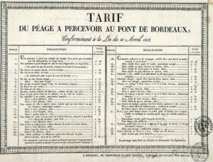 Article complet avec nombreuses photos d’archives : https://www.sudouest.fr/gironde/bordeaux/le-saviez-vous-autrefois-pour-passer-le-pont-de-pierre-a-bordeaux-il-fallait-payer