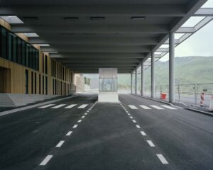 L’Andorre est un micro-état où vivent 75 000 habitants. Il n’y a que deux routes d’accès : une par le Pas de la Case, depuis la France, l’autre par l’Espagne depuis la ville de Seu d’Urgell, à 2 000 m. d’altitude. Le Pas de la Case ou « passage de la maison » en catalan, désigne la cabane de berger qui était alors la seule habitation de l’endroit au début du 20e siècle. Les postes de douane française et andorrane ont été transférés en territoire français, à trois kilomètres de la sortie du tunnel d’Envalira, lors de la construction de ce dernier en 1999. L’Andorre ne fait pas partie de l’Union européenne. Il s’agit donc d’une frontière sur laquelle se trouvent encore des douaniers en poste fixe. Situé sur un axe transfrontalier majeur, le poste de douane du Pas de la Case dénote par son architecture d’envergure et symétrique, comparable à celle des péages d’autoroute.